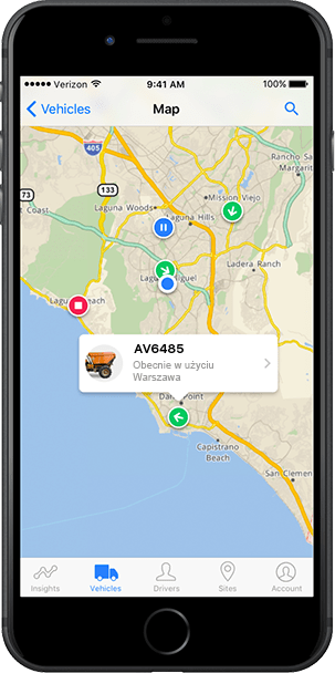 Sprawdzaj lokalizację sprzętu, jego bieżący stan a także resztę swoich mobilnych zasobów, takich jak firmowe pojazdy, składy materiałów czy place budowy. Możesz też ustawiać niestandardowe znaczniki na mapie.